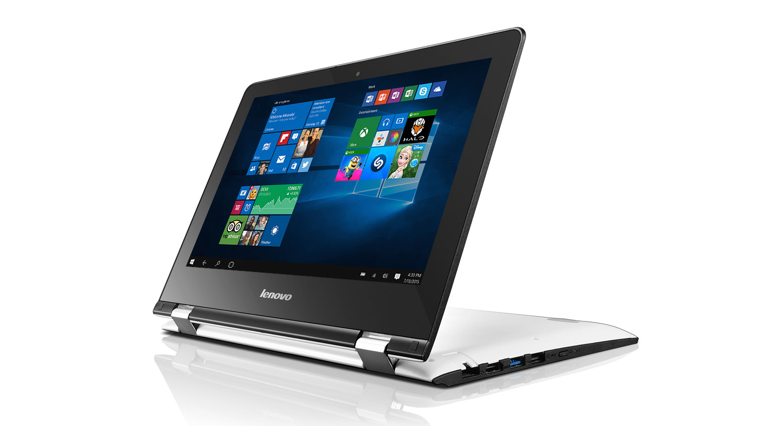 Yoga watchband hinge, 360 degree, four modes (Laptop, Tablet, Tent & Stand) 720p HD, 1.0 MP resolution, fi xed focus, integrated dual array microphone Graphics Intel HD Graphics 5300 in processor, supports external digital monitor via Micro HDMI Port (1080p support) ... Access Full Source